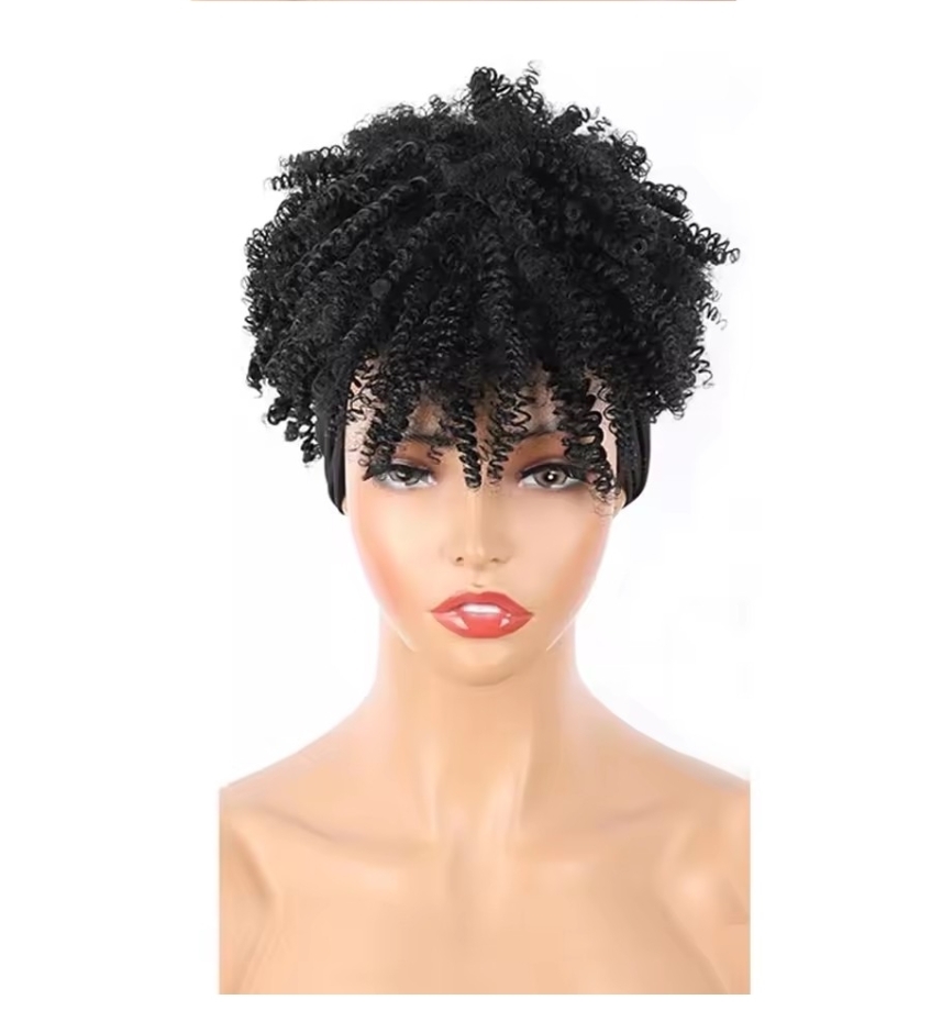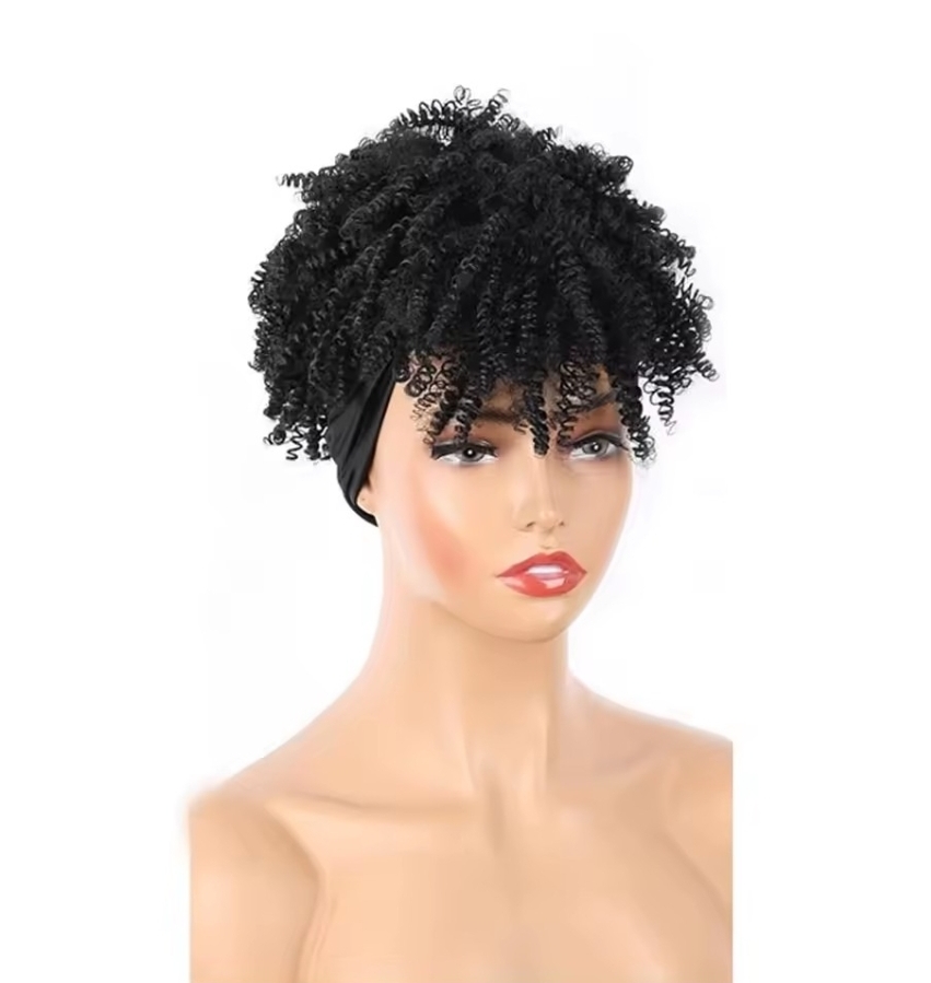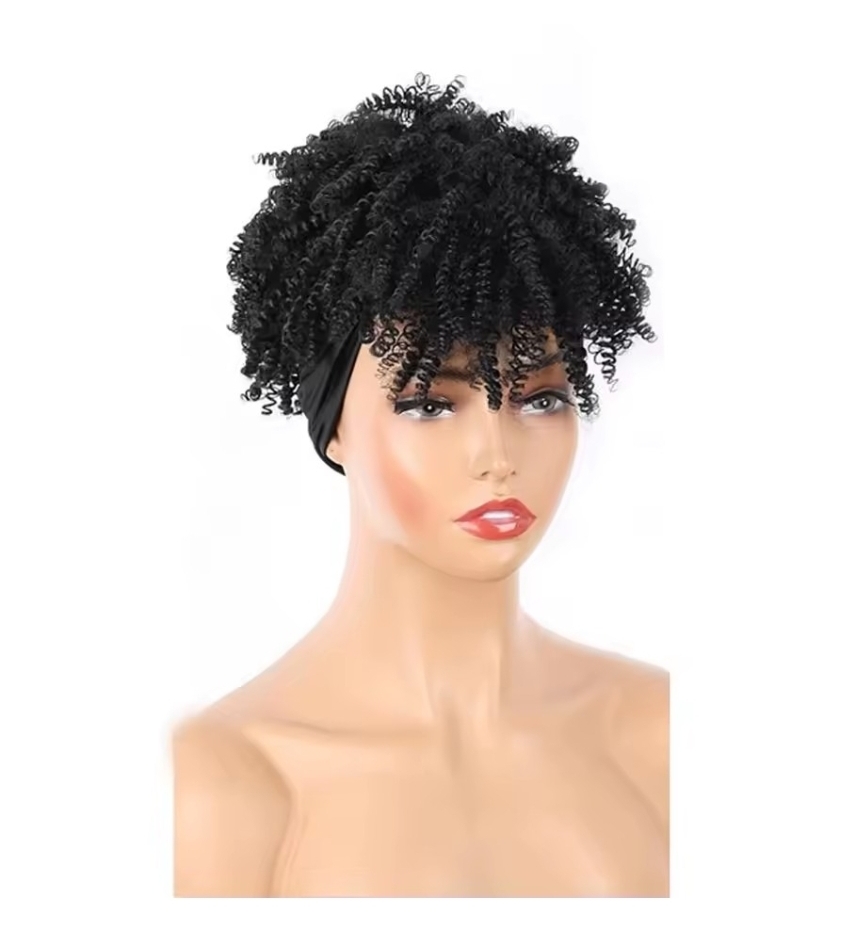 Short Fluffy wig with headwrap.